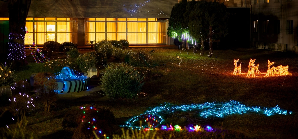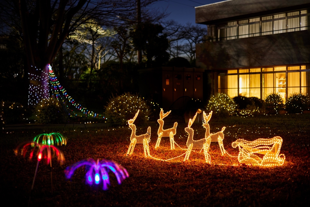 シェアプレイス調布多摩川の中庭や玄関は、毎年クリスマスの時期になるとイルミネーションで彩られるのですが、こちらも入居者さんのアイデアではじまったのだそう。庭仕事が得意な方が中心となって、ライトの選定や飾り付けなどを楽しまれています。シェアハウスの一角とは思えないほど本格的ですね。