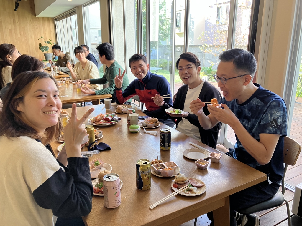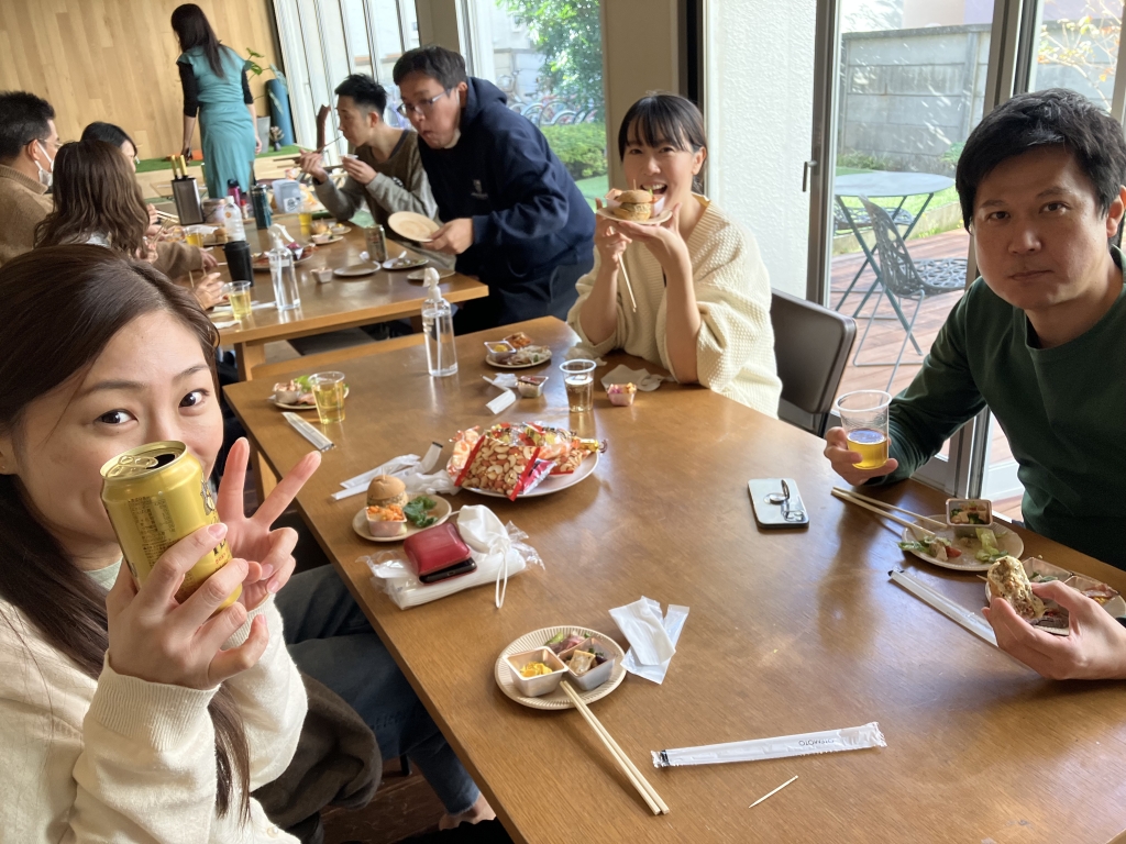 ほっと一息ついてからお掃除を再開し、大掃除終了後は全員でテーブルを囲ってランチ会。片付けに集中するとお腹が空きますね。ケータリングのご飯を食べながら「お正月はどう過ごす?」など年末らしい話題で盛り上がりました。