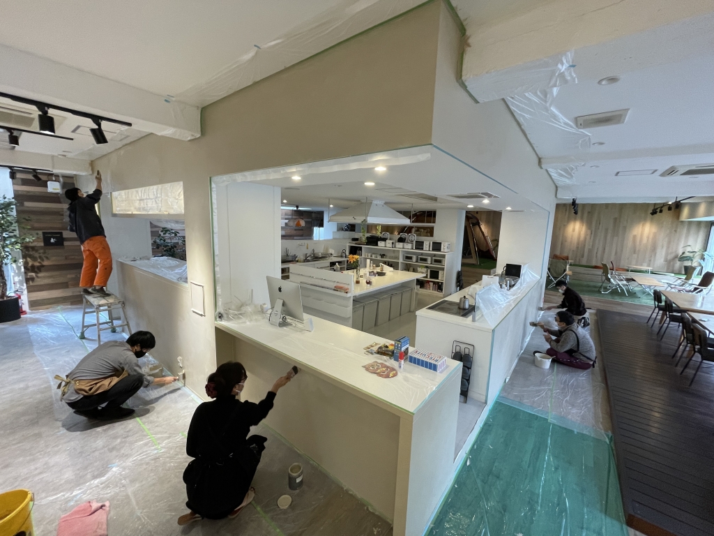 レクチャーを受けた後は、三面あるキッチンの壁の好きな箇所から塗装をはじめました。