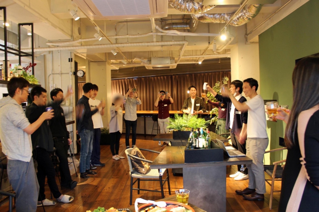 リニューアルしたばかりの7Fの共有ラウンジに、「乾杯」の声が響き渡りました。