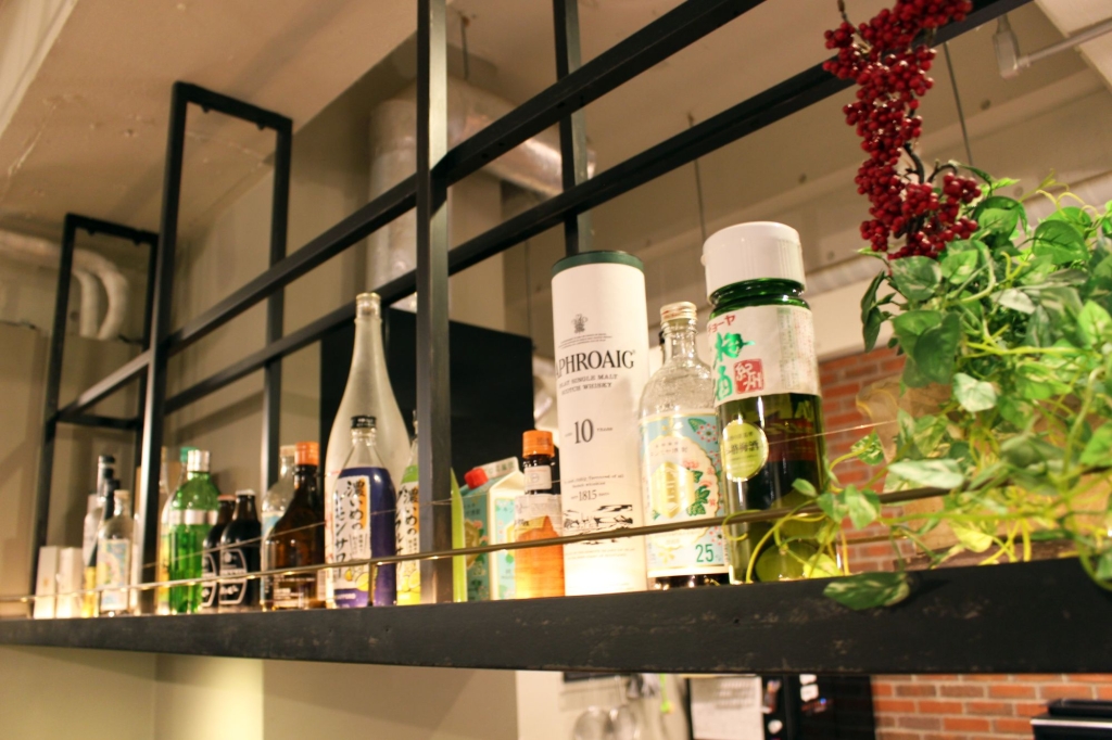 キッチンのバーカウンターです。お酒を飲みたいときにちょうどいいし、出張帰りの人やふるさと納税を活用している子がボトルを置いていってくれるので、シェアハウスらしいお裾分けの文化を感じられて好きです。