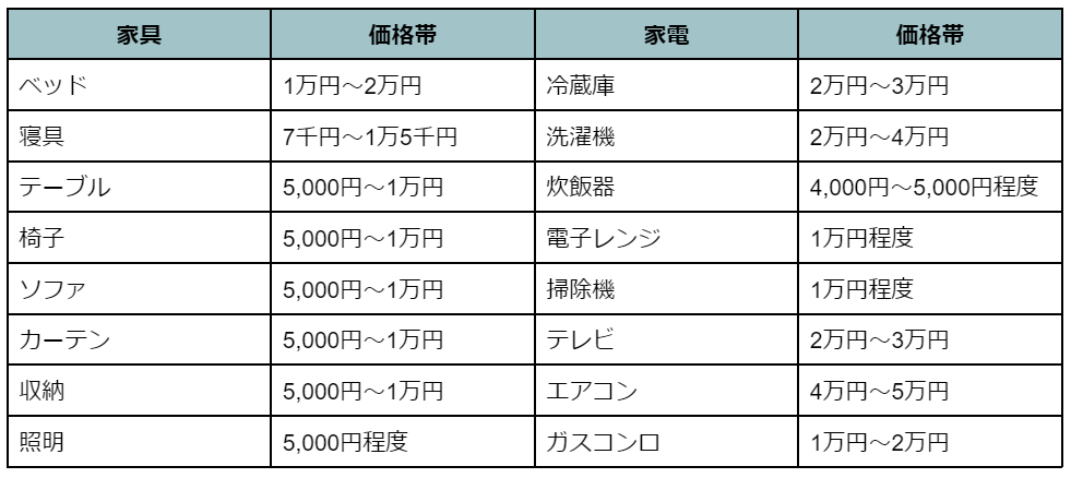 おすすめ理由その②「家具・家電を一式揃える必要がない」