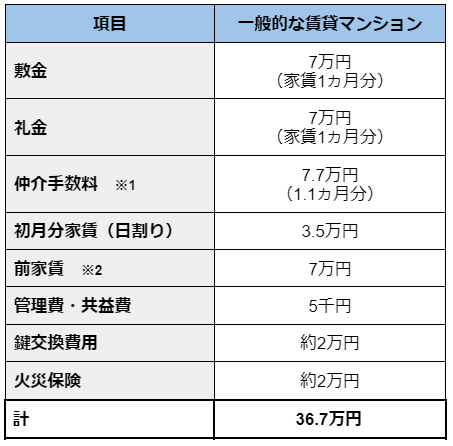 ※2:翌月分の家賃。家賃は基本的に前払いのため、契約時に一緒に支払う