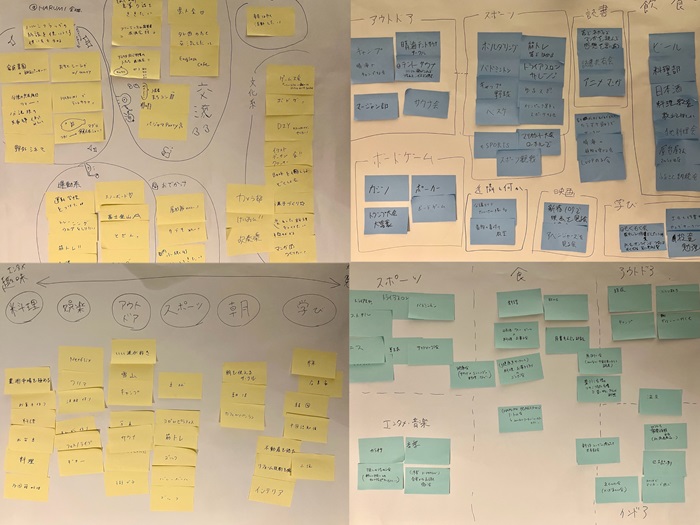 あったらいいな、やってみたいなと思うサークルを各々が妄想してチームで共有します。実現可能かはさておいて、とにかく沢山のアイデアを出し合いました。