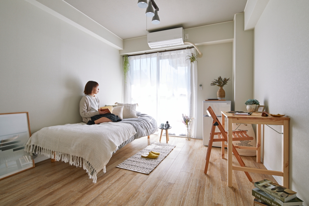個室にはベッドや冷蔵庫など最低限の家具が備え付けられているので、家具・家電をお持ちでなくても契約後すぐに生活をはじめられます。 2022年2月には、在宅時間をより快適に過ごしたいというニーズに応え、オープンテラス、フィットネスルーム、ワークスペースを新たに設けました。