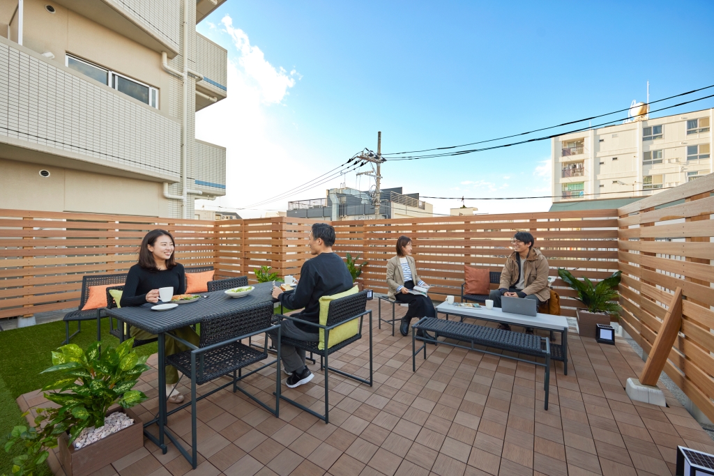 「経堂駅」から徒歩13分に位置する「シェアプレイス経堂」。隣の「千歳船橋駅」へも徒歩8分と、2駅が利用でき便利です。物件内には、シェアラウンジに広々としたキッチン、フィットネスや映画鑑賞が楽しめるスタジオ、屋外テラスなどの共用スペースが充実。Wi-Fi・電源・モニター完備のゆったりとしたワークスペースは、在宅勤務やフリーランスの方に人気です。