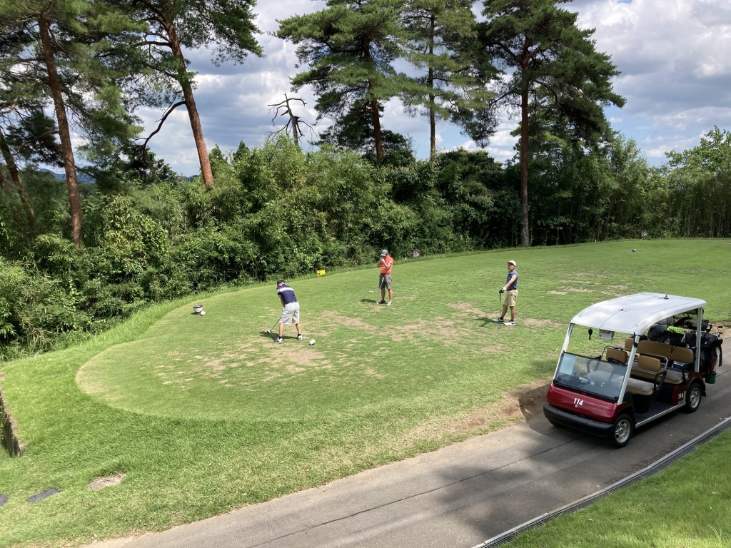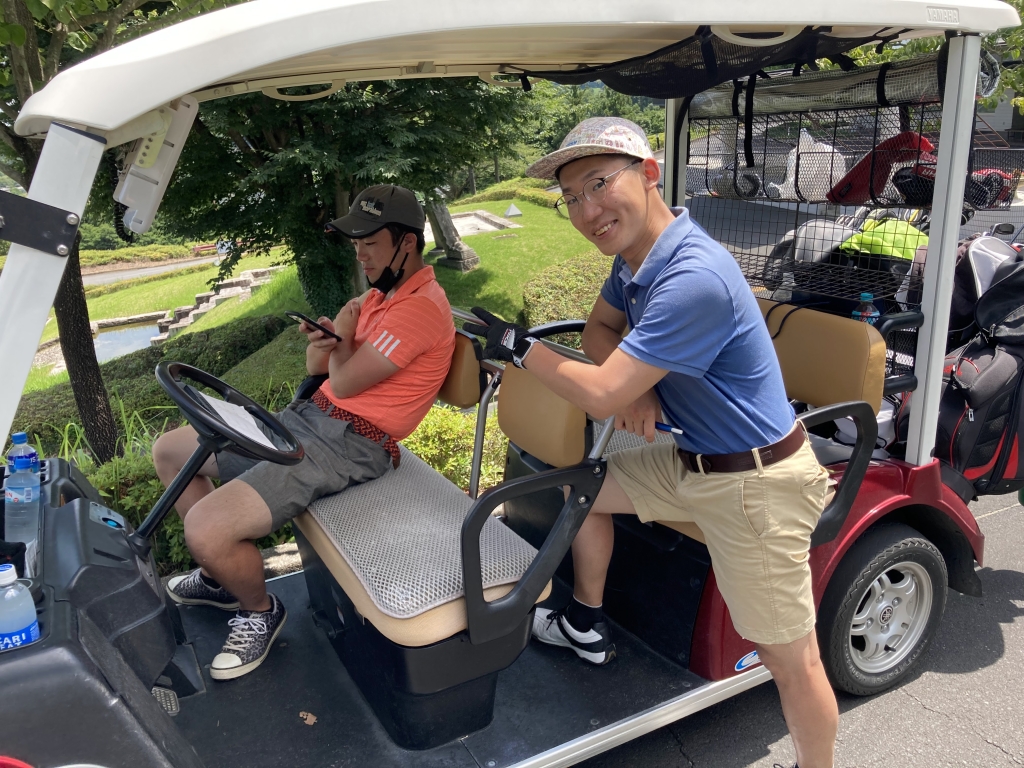 ゴルフコースは全18ホールで構成されていて、チームメンバーと共にカートに乗って長距離を移動します。初対面同士でも、移動中やプレー中にコミュニケーションを取れるのがゴルフのいいところですね。