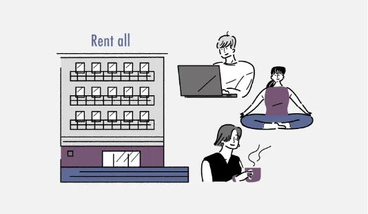 少人数からワンフロアや1棟まとめ借りまで、様々なご利用を承ります。