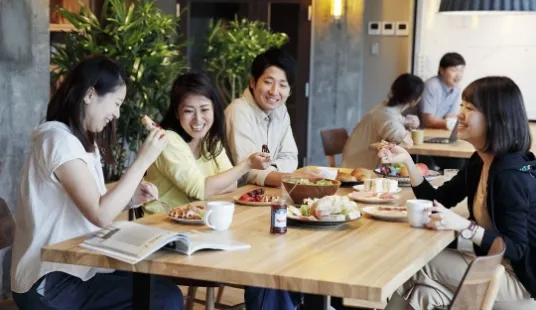 Environment with abroad perspective広い視野が持てる環境を社員様に提供シェアプレイスというもう一つの居場所があることで、若手社員様が日常を共有する体験を通して視野を広げる価値観を育む機会を提供します。