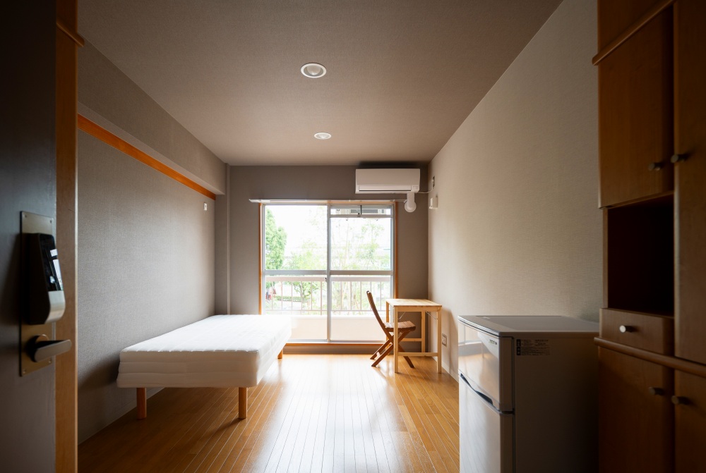 元々鉄筋コンクリート造の大型社員寮だった建物をリノベーションした物件の為、お部屋間の間仕切りは通常の1人暮らし仕様のワンルームマンション等と同等の環境。お部屋の中でのリモート会議も快適に行えます。