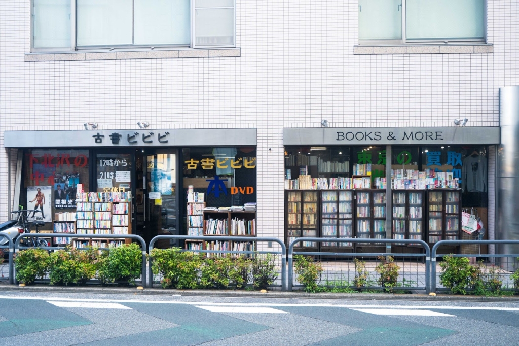 シェアプレイス下北沢から徒歩3分の場所にある「古書ビビビ」です。2005年2月に「鈴なり横丁」の1階部分にオープンし、5年ほど経った頃に数十メートル離れた現在の店舗に移転しました。