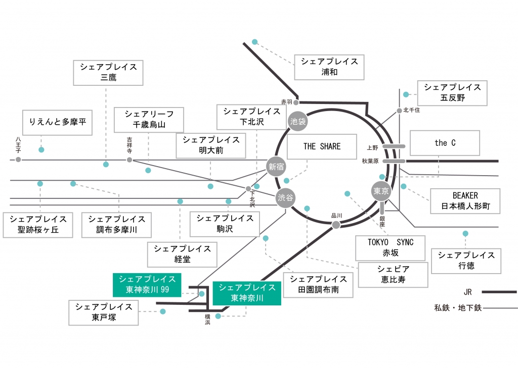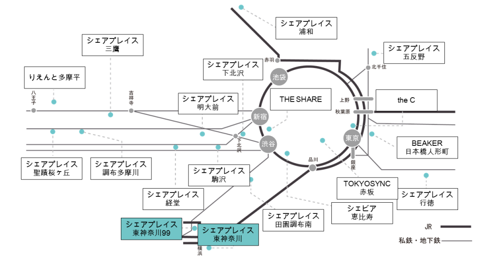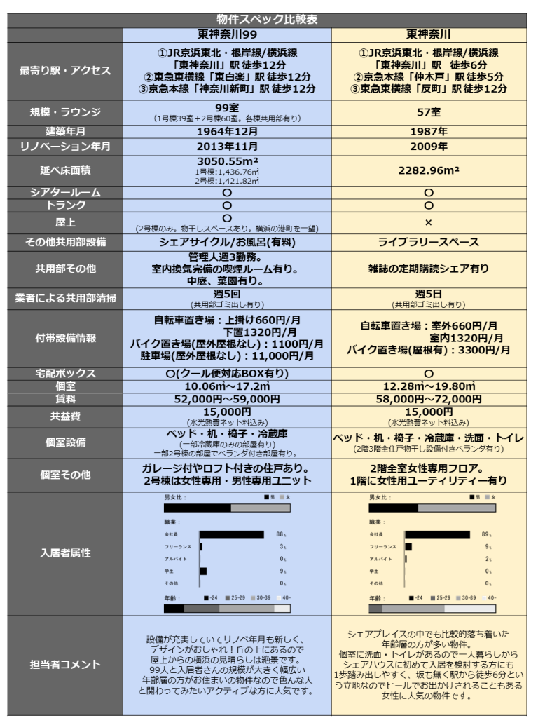 まずは一覧でシェアプレイス東神奈川99、シェアプレイス東神奈川の特徴を比較してみましょう。