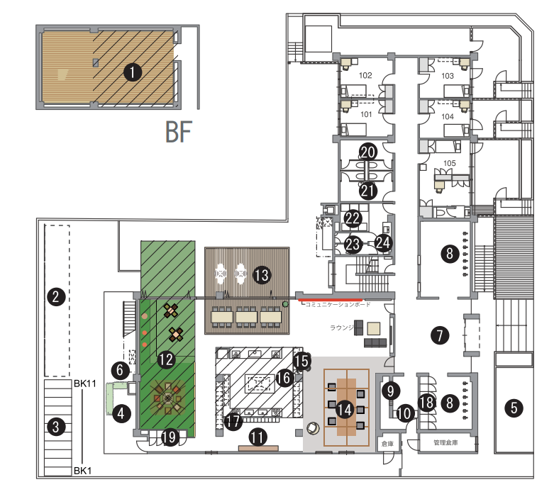 - 個室13㎡以上の部屋